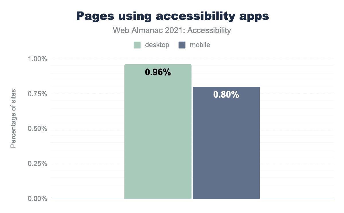 根本的には、ableism に後押しされ、オーバーレイは、ほとんどの組織が苦労している問題を解決するものとして位置づけられています。この章を通して、インターネットはほとんどアクセスできない、というデータは明らかです。