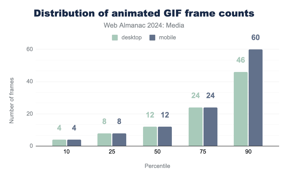 一般的には:10〜20フレームで、これは2022年からほとんど変わっていませんが、最も長いGIFは特にモバイルでより長くなっています。