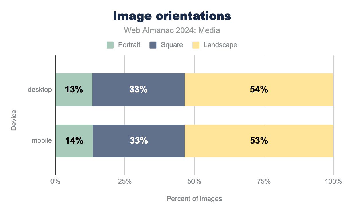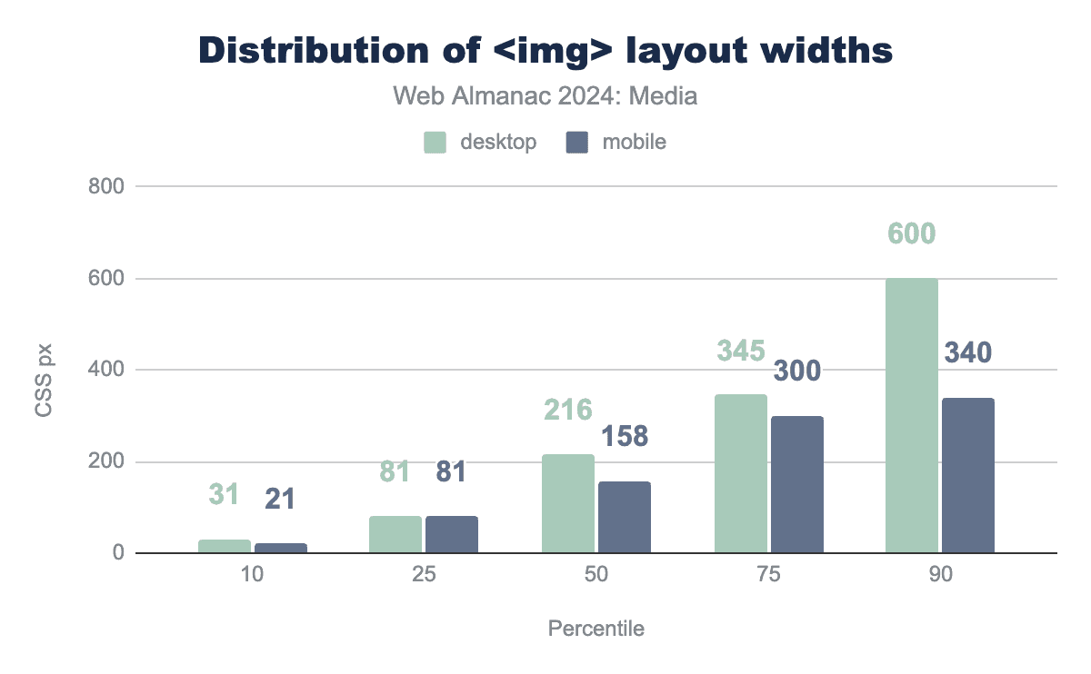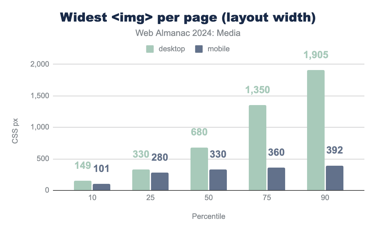 ウェブ上のほとんどの画像はレイアウト内ではかなり小さくなっています。興味深いことに、モバイルのレイアウトサイズの大部分は2022年からほとんど変わっていませんが、デスクトップのレイアウトサイズの上位半分はすべて約8%増加しています。
