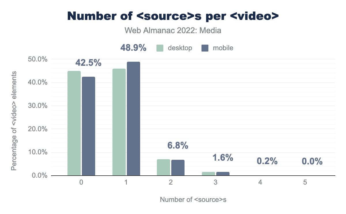この数字は2022年から1.5パーセントポイント以上増加していますが、<picture>を使用する1ページに対してsrcsetを使用するページが4ページ以上あるという事実は、<picture>のユースケースがより限定的であるか、<picture>の導入がより困難であるか、あるいはその両方であることを示唆しています。