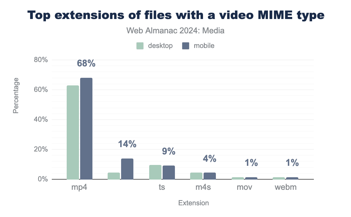 2024年にサイトはどのようなフォーマットを配信しているでしょうか?普遍的なサポートを享受しているMP4が王様です: