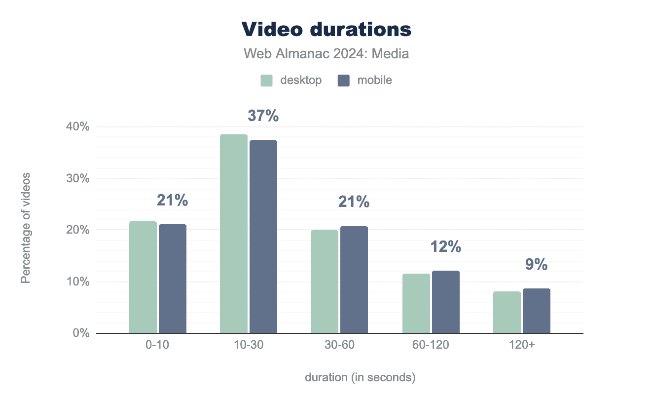 10本中9本の動画は2分未満です。半分以上が30秒未満です。そして、動画のほぼ4分の1が10秒未満です。